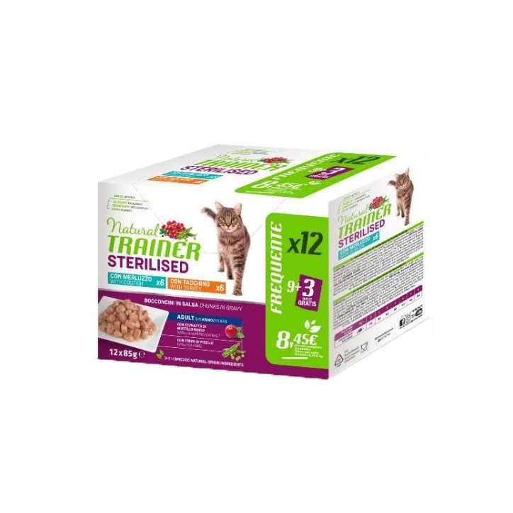 Natural Trainer Adult Sterilized , hergestellt aus Kabeljau und funktionellen Zutaten wie Cranberry, ist eine leckere Alternative zu Stücken in Soße, um alle Bedürfnisse Ihrer sterilisierten Katze zu befriedigen.