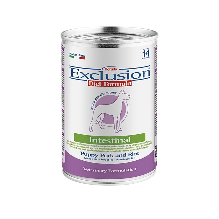 Exclusion Diet Intestinal Puppy All Breeds ist ein diätetisches Alleinfuttermittel für Welpen, das entwickelt wurde, um akute Resorptionsstörungen im Darm zu reduzieren und Verdauungsstörungen auszugleichen. Dieses Alleinfuttermittel hat einen erhöhten Elektrolytgehalt, hochverdauliche Inhaltsstoffe und einen niedrigen Fettgehalt.