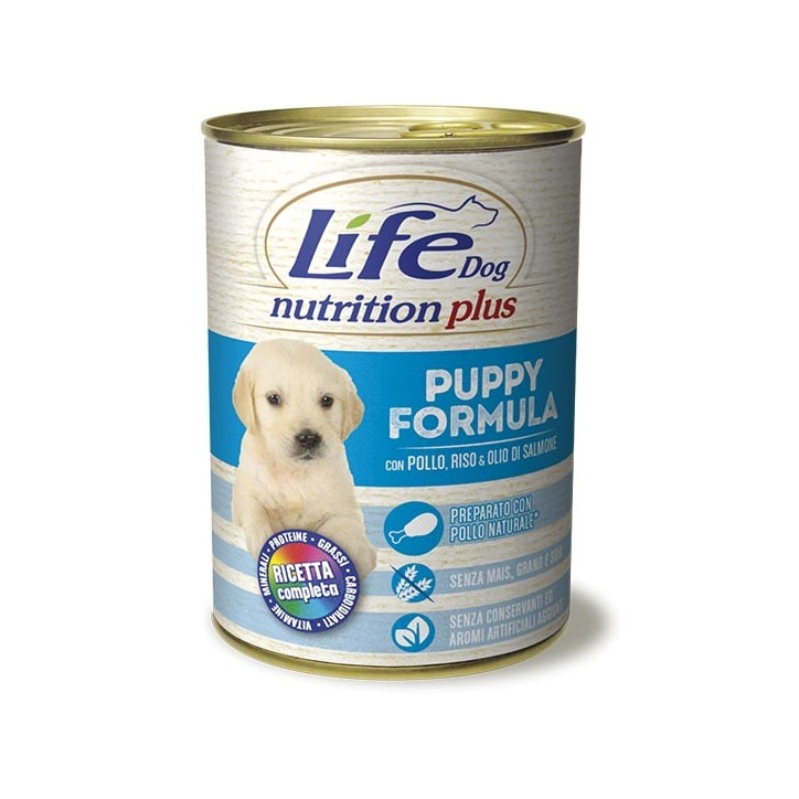 Gehacktes Hühnerfleisch Ende, mit wertvollen Zutaten für das Wachstum des Welpen.