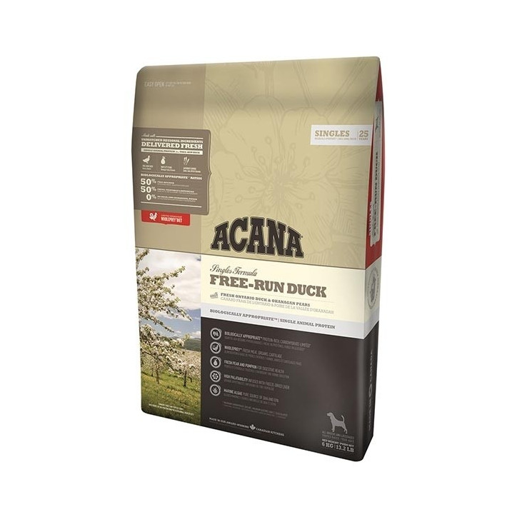 frisches Entenfleisch (18%), dehydriertes Entenfleisch (17%), ganze Erbsen, ganze rote Linsen, Enteneingeweide (Herz, Leber, Niere) (0,7%), Entenfett (6%), frische Bartlettbirnen (4%) ), ganze Kichererbsen, ganze grüne Linsen, ganze gelbe Erbsen, getrockneter Entenknorpel (2%), Linsenbrötchen, Algen (1,2%) (reine und nachhaltige Quelle von DHA und EPA), ganzer frischer Kürbis, ganzer frischer Kürbis, dehydriert braun Seetang, liolisierte Entenleber (0,1%), Salz, frische ganze Preiselbeeren, Zichorienwurzel, Kurkumawurzel, Mariendistel, Klettenwurzel, Lavendel, Eibischwurzel, Rosenbeeren.