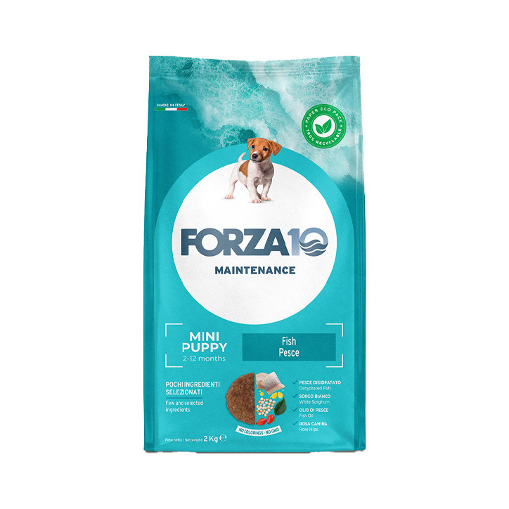 FORZA10Puppy Junior Maintenance mit kleinen / mittleren Fischenist ein spezielles Erhaltungsfutter für kleine / mittelgroße Welpen, vollständig und ausgewogen, formuliert von der SANY Forschungs- und EntwicklungsabteilungHaustier.