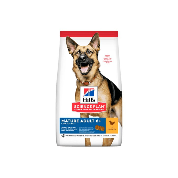 Hill's Science Plan Mature Adult Large Breed Adult Hundefutter mit Huhn wurde für die spezifischen Alterungsbedürfnisse von Hunden großer Rassen entwickelt.