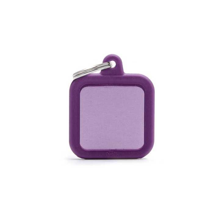 MY FAMILY Lila Aluminium Square Hushtag Tag mit lila Gummi