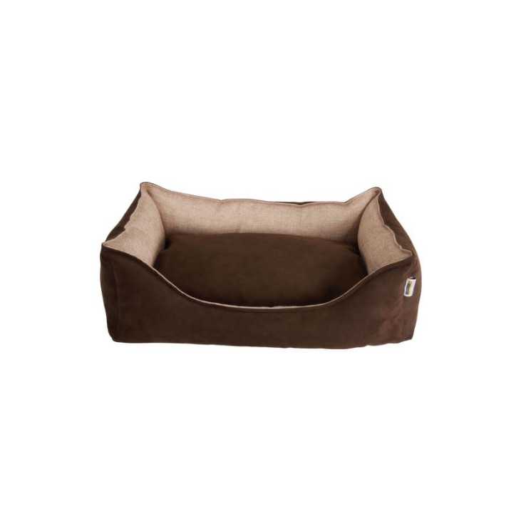 Sehr bequeme Hundehütte mit Doppelkissen aus abnehmbarem Polyestergewebe.