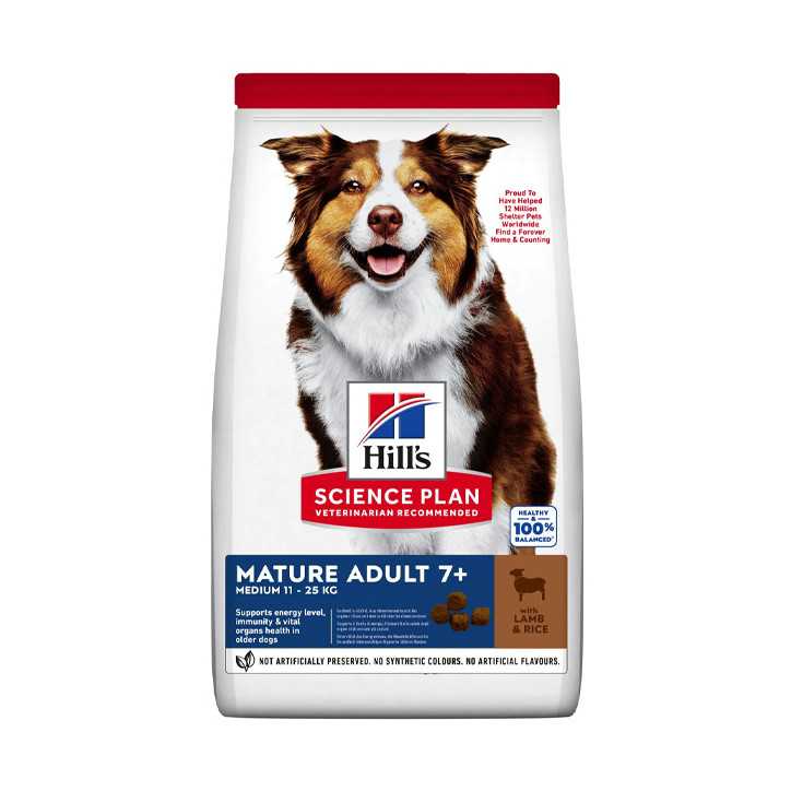 Hill's Science Plan Mature Adult Hundefutter mit Lamm & Reis wurde speziell entwickelt, um das Immunsystem, die Verdauungsgesundheit und den Muskelaufbau bei ausgewachsenen Hunden zu unterstützen.