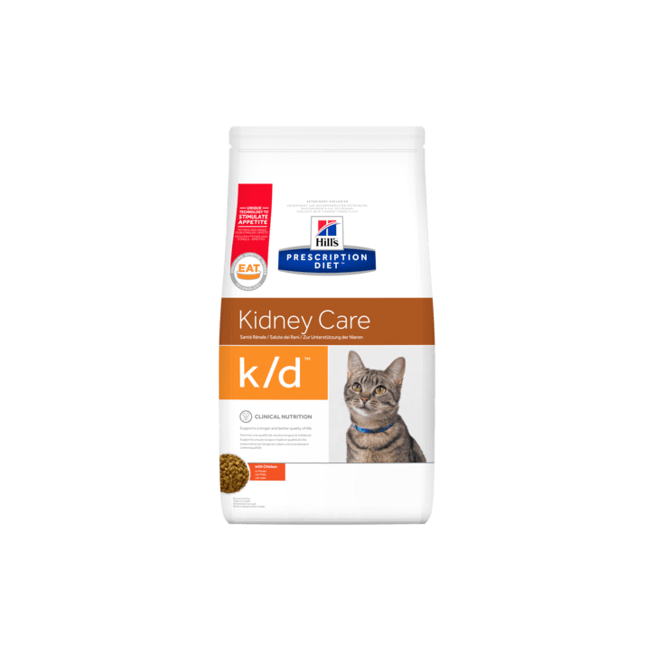 Hill's Prescription Diet cat k/d dry mit Huhn wurde speziell von Tierärzten für Katzen mit Nierenerkrankungen entwickelt. Diese Diät verlängert die Lebenserwartung und verbessert die Lebensqualität der Katze, indem sie die Entwicklung von Symptomen verlangsamt.