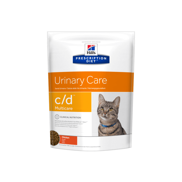 Die Verabreichung von Prescription Diet ™ Feline c / d ™ Multicare mit Huhn erhält die Gesundheit der Harnwege effektiv und reduziert das Risiko einer Neubildung von Steinen nach der Auflösung.