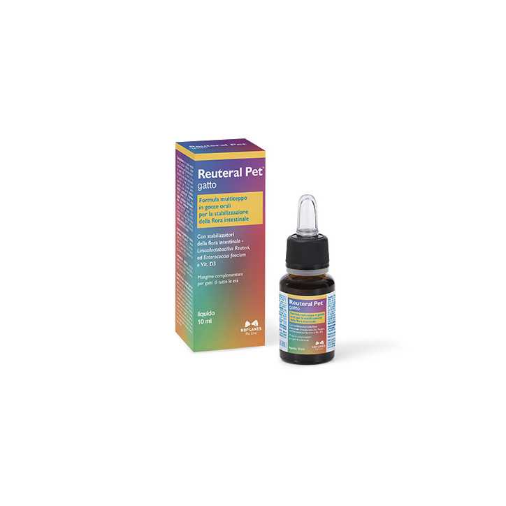 Reuteral Pet Katze Es handelt sich um ein Ergänzungsfuttermittel ohne tierische Nebenerzeugnisse, das dank seiner Mehrstammformulierung zur Stabilisierung der Darmflora beiträgt.