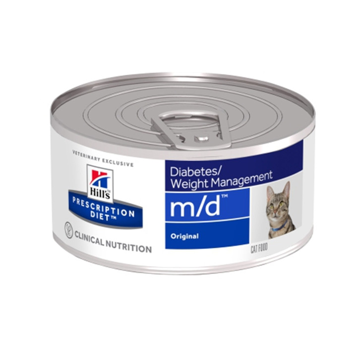 Hills Prescription Diet m/d Diabetes / Weight Management nass für Katzen in 156 gr Dosen ist ein Futter zur Behandlung von Übergewicht und Diabetes mellitus bei Katzen und hilft, Übergewicht zu reduzieren. Tatsächlich ermöglicht ein hoher Proteingehalt und eine niedrige Kohlenhydrataufnahme Ihrer Katze, Fett schnell in Energie umzuwandeln. Dieses Futter enthält außerdem L-Carnitin, das den Fettstoffwechsel anregt und gleichzeitig bei Gewichtsreduktion für den Erhalt der Muskelmasse sorgt. Die hohe Aufnahme von Antioxidantien hilft, schädliche freie Radikale zu neutralisieren.