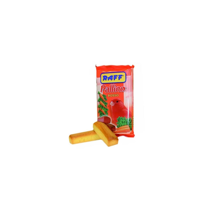 Raff Pallino Rosso ist ein schmackhafter Pigmentieren Keks aus frischen Eiern geeignet für alle Ziervögel. Es belebt die Farbe der Vögel und ist eine Energie- und Proteinquelle, dank der Energie des mit getrockneten Karotten und Spinat angereicherten Eies.