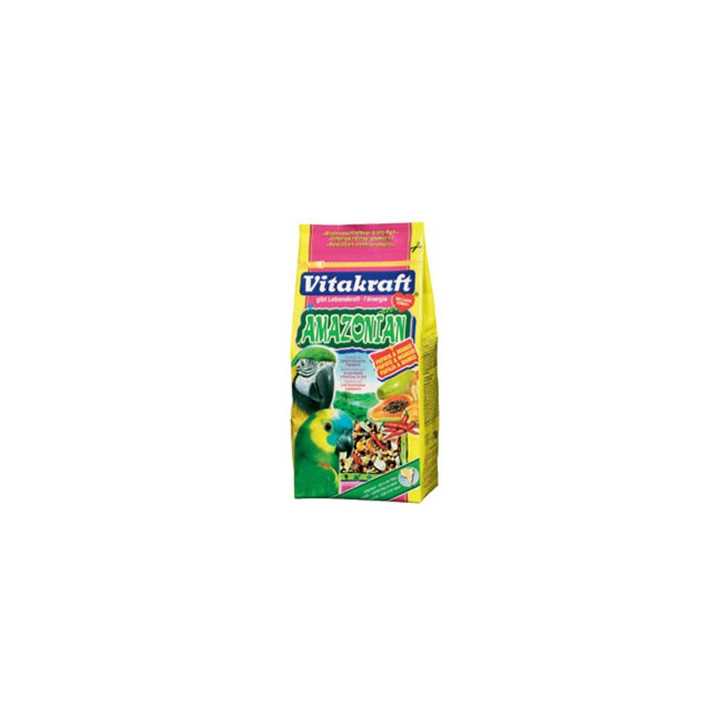 Spezifisches Amazonasfutter , angepasst an die Herkunftsgebiete, das ideale Futter für Papageien amazonischer Herkunft . Enthält proteinreichen Mais, Dari, Sonnenblumenkerne, Haferkörner, Papaya und Mango. Sie kommen in Mischungen und Krackern vor, die Vögel dazu anregen, wie in der Natur selbst nach Nahrung zu suchen.