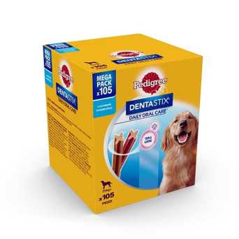 Pedigree Dentastix helps reduce tartar by up to 80%, is low in fat and sugar free. To help keep your dog's teeth and gums healthy and strong, use PEDIGREE DentaStix every day.