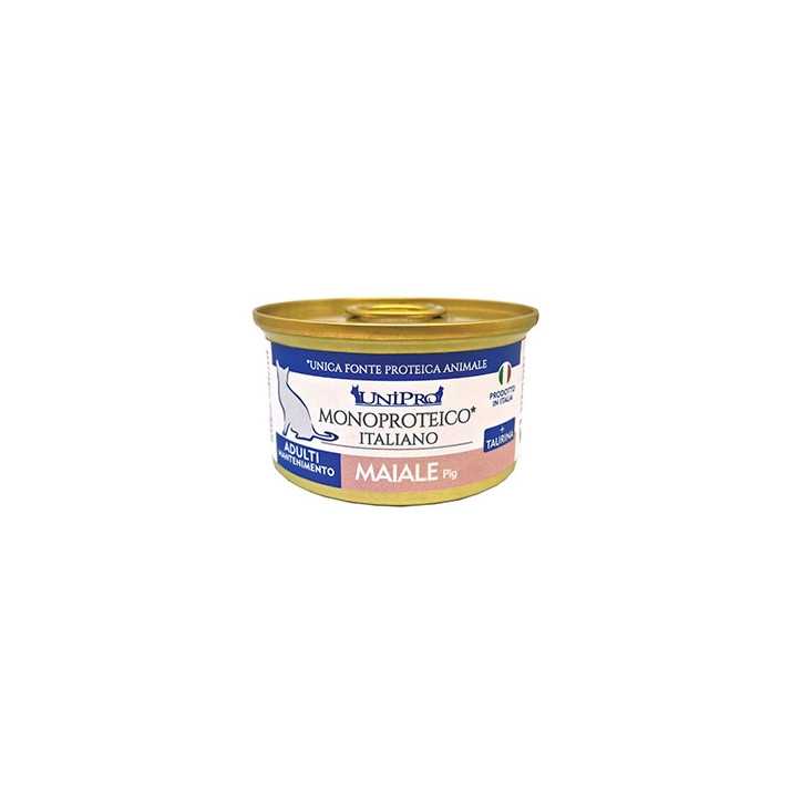 It is a complete mono-protein food for adult cats of all breeds.