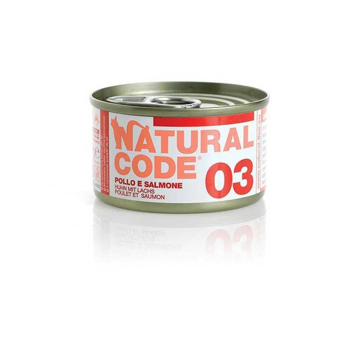 Equal percentages of chicken and salmon are mixed for the preparation of this food: chicken is a staple food for the cat and salmon enriches it ensuring a great palatability and providing essential fatty acids and vitamins in quantity.