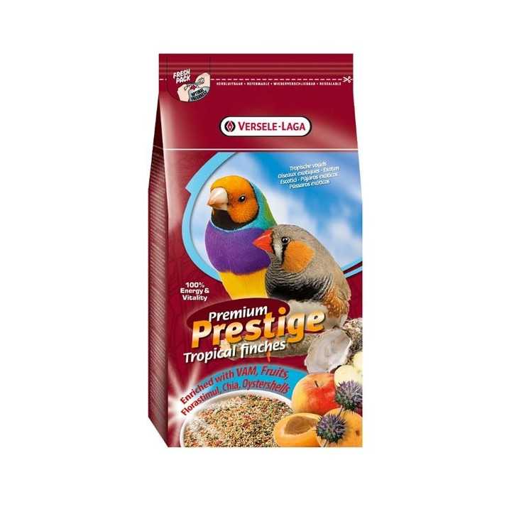 Premium blend for exotic birds with 4% red panic and 2% chia. With the addition of extruded VAM granules (8%) and oyster shells (2%) and enriched with 5% of yellow, red and green biscuits.