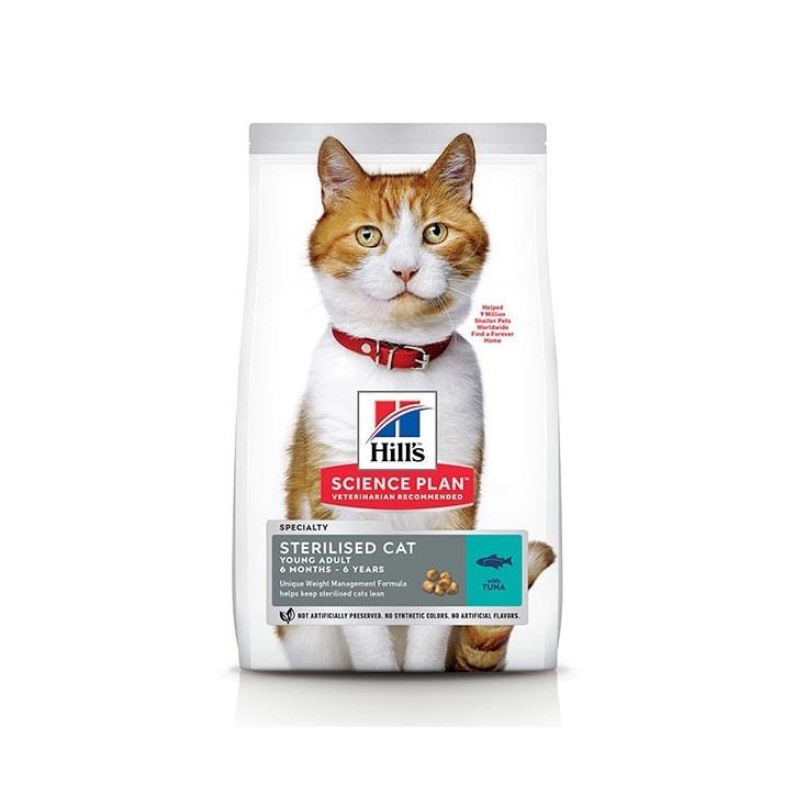 Hill's Science PlanSterilized Cat Young Adult Dry Cat Food contains the unique Weight Management Formula to help neutered cats stay lean.