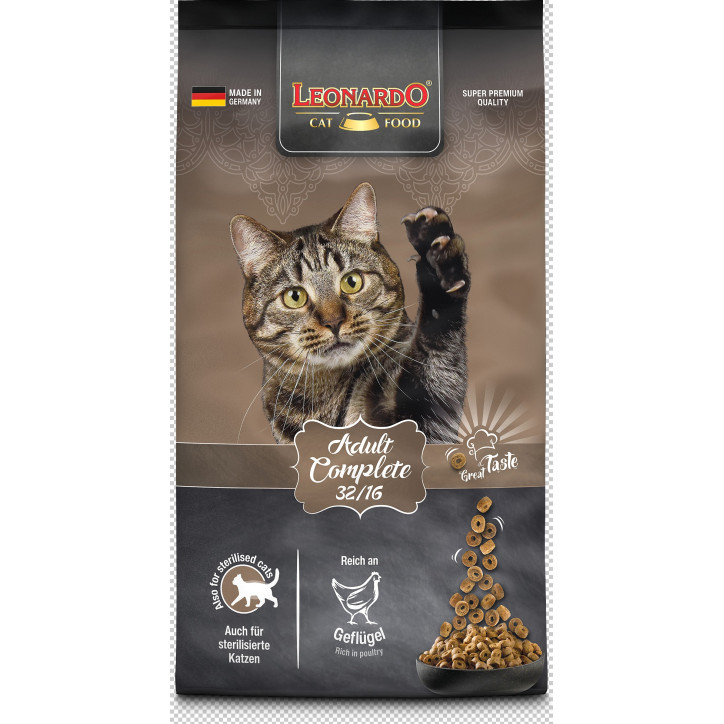 Leonardo Adult Complete 32/16 is ideal for all breeds of adult cats from one year of age , also recommended for less active cats.