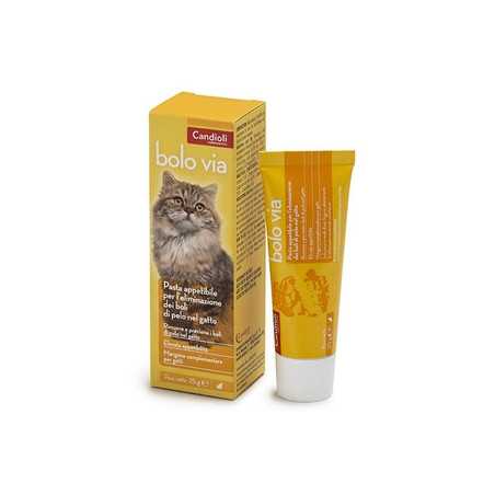 Bolo Via pastait contains substances that soften the faeces, emulsify the hair and facilitate the elimination of trichobezoars, reducing related digestive disorders and the consequent risk of occlusive syndromes in cats.