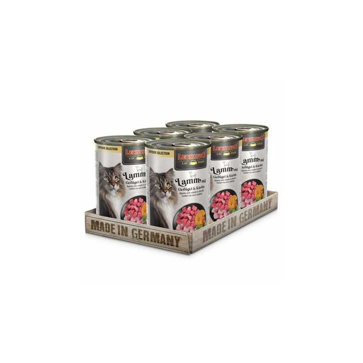 Composition: poultry meat, liver, heart and gizzard (40%); poultry and lamb broth (28.8%); meat, heart, liver, lung and kidney of lamb (26%) pumpkin (4%); minerals (0.5%); dried eggshells (0.5%); salmon oil (0.1%); dried catnip (0.1%)