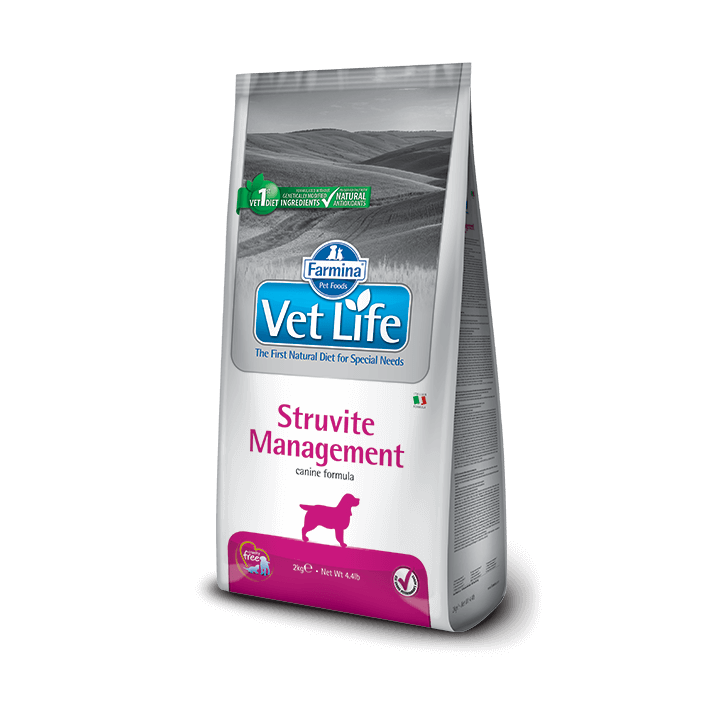 Farmina Vet Life Struvite Management is a complete dietetic food intended for adult dogs, indicated for the management of subjects suffering from uroliths of the lower urinary tract