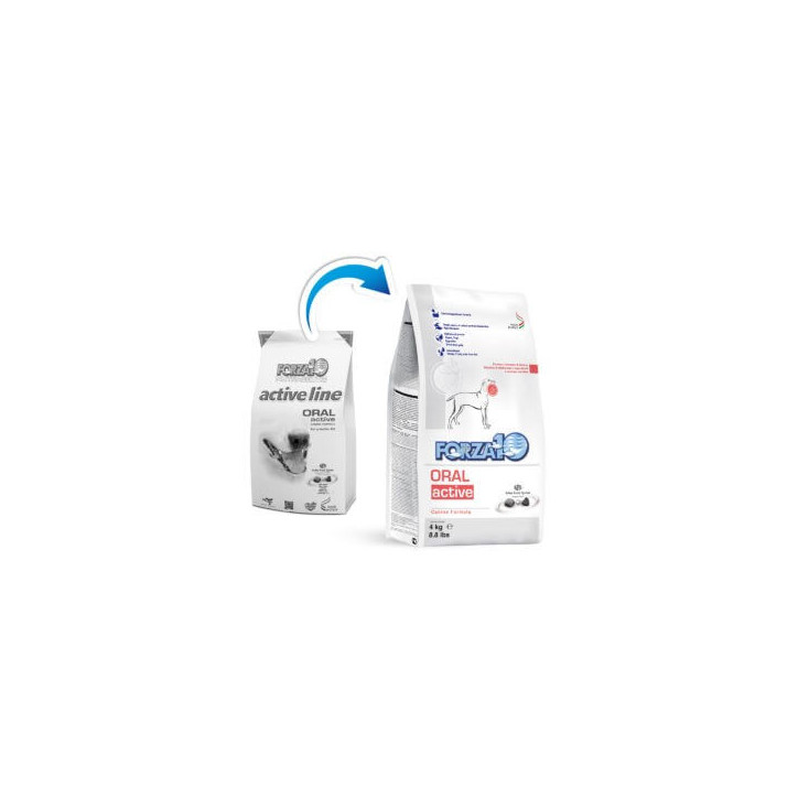 Forza10 Oral Active is a complete dietetic dry food in kibble for dogs with oral cavity disorders.