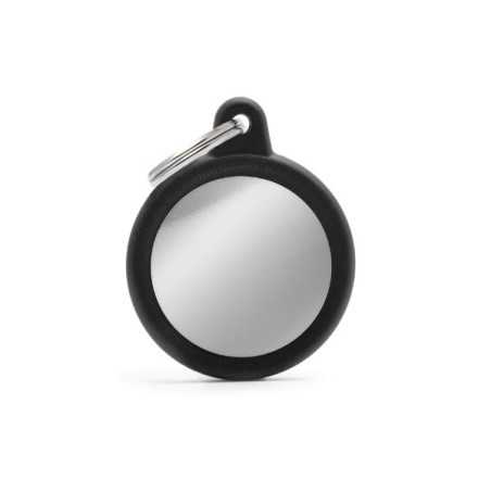 MY FAMILY Hushtag ID Tag Black Chrome Brass Circle with Black Rubber