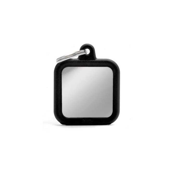 MY FAMILY Hushtag ID Tag Square Brass Chrome Black with Black Rubber