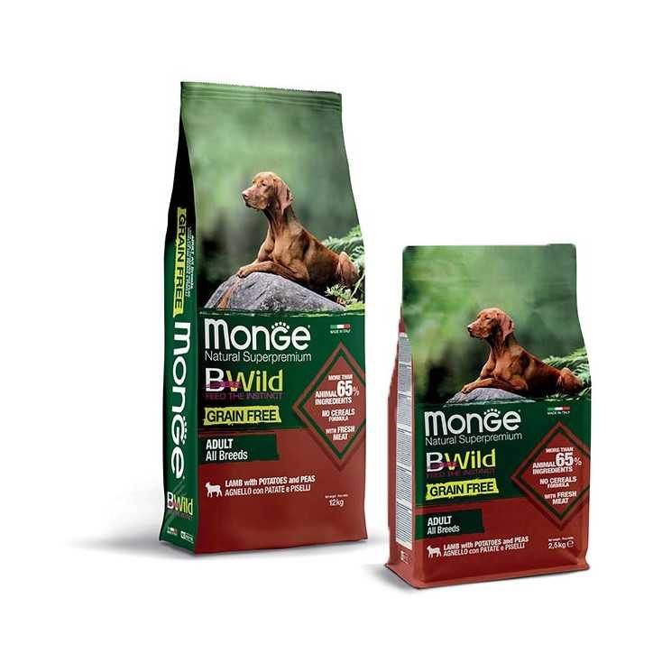 MONGE BWild Grain Free Adult All Breeds with Lamb, Potatoes and Peas 12 kg.