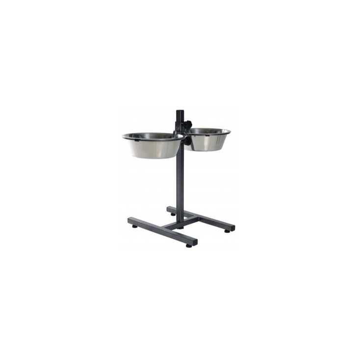 Stand with two bowls for dogs with stainless steel, metal pedestal and pattered paint with adjustable height