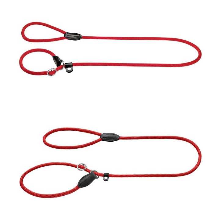 Leash / Hunter collar in rope made of polyamide, with sliding adjustment by means of a stop ring and regulator. Reinforced leather inserts