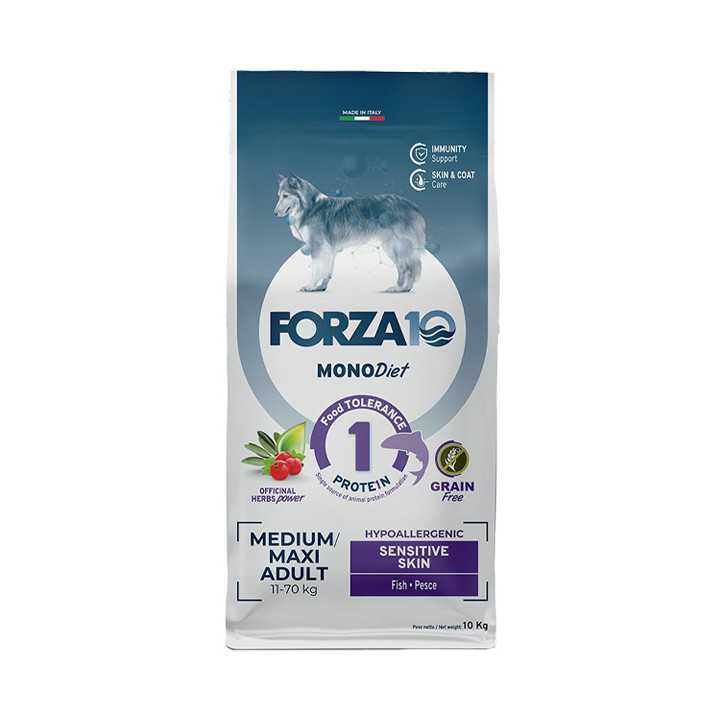 Dehydrated anchovy 28%, potato, potato starch, potato protein, oils and fats (fish oil 6%), whole pea, minerals, hydrolyzed animal proteins, algae (Ascophyllum nodosum), mannan oligosaccharides (MOS) 0.2%, fructooligosaccharides (FOS) 0.08%, products obtained from the processing of herbs (Rosa canina 0.079%, Salvia officinalis 0.01%), dried fruit pressing residue (Vaccinium macrocarpon 0.039%), Yucca schidigera.