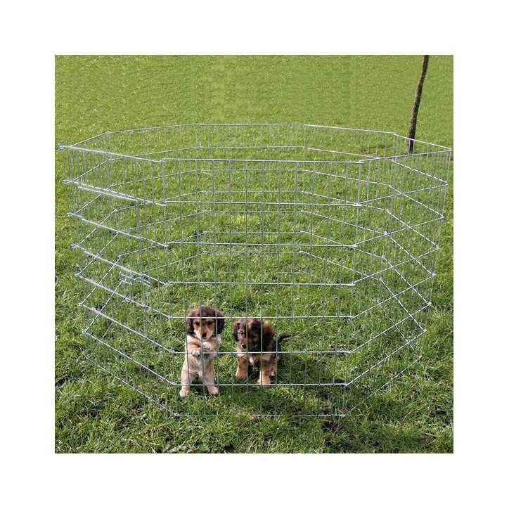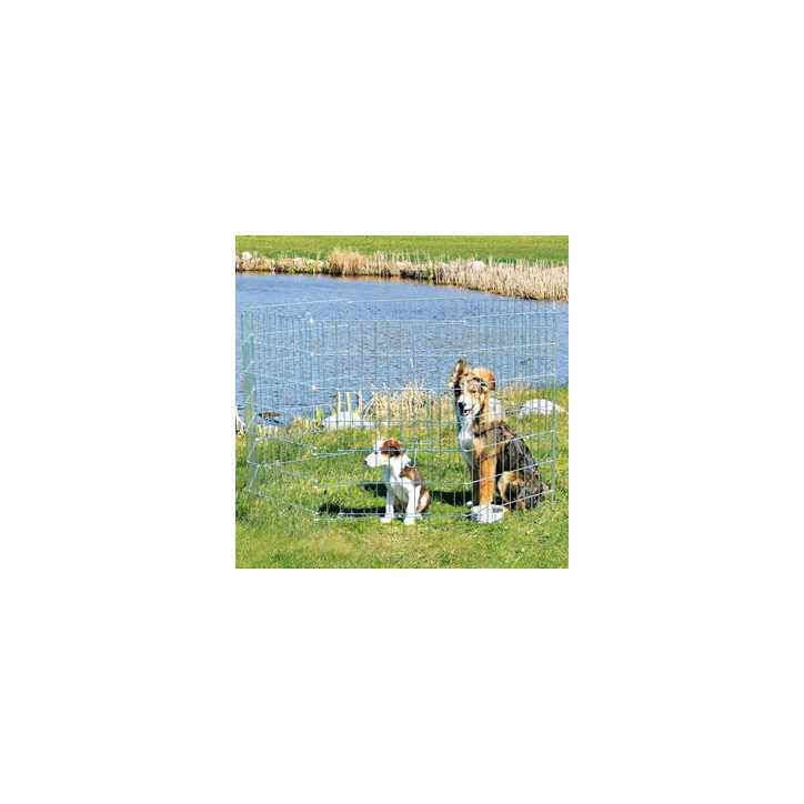 Galvanized metal fence with door. Consisting of 8 expandable elements with additional fence.