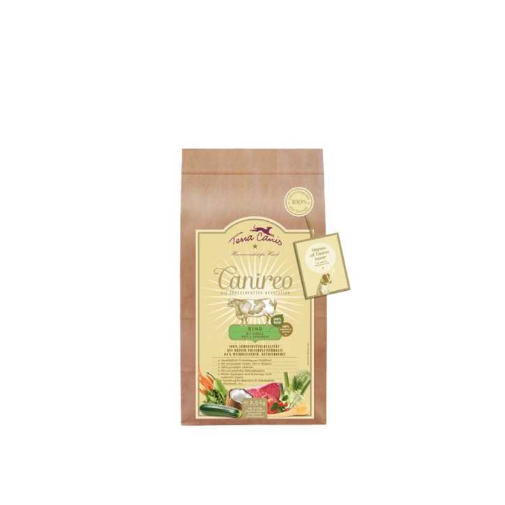 THE FIRST 100% HUMAN GRADE DRY FOOD CONVINCES WITH THE EXCLUSIVE USE OF FRESH MEAT USING ABOUT 64% MUSCLE MEAT AS A MONOPROTEIN SOURCE. THE MEAL IS COMPLETED WITH TWELVE KINDS OF HEALTHY, FIBER-RICH FRUITS AND VEGETABLES, WHICH GUARANTEE HEALTHY DIGESTION. SEAWEED, EGG SHELL, MINERAL CLAY, ARONIA AND ROSE CANINA PROVIDE ALL THE ESSENTIAL NUTRITIONAL SUBSTANCES, WHILE GREEK HAY AND RAPE SEED FLOUR SUPPLY THE PRECIOUS FATTY ACIDS IS OMEGA 3 FREE. CANIREO IS COOKED IN A COMPLETELY NATURAL AND ARTISAN WAY IN A FOOD COMPANY.