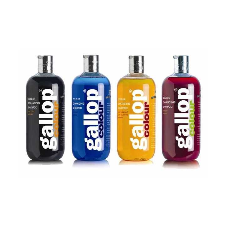 Gallop Color Enhancer Shampoos are uniquely formulated luxury shampoos available for all horse colors.
