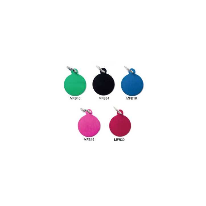 Medaglietta cerchio grande in alluminio anodizzato. Disponibile in vari colori. Made in Italy.