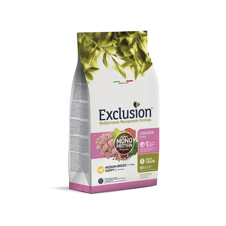 EXCLUSION MEDITERRANEO Monoproteico Puppy Taglia Media Pollo 12 Kg.