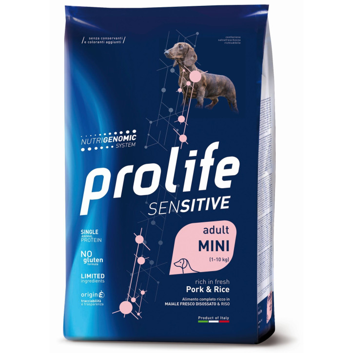 Maiale Fresco disossato e Riso per il cane adulto sensibile di taglia piccola.