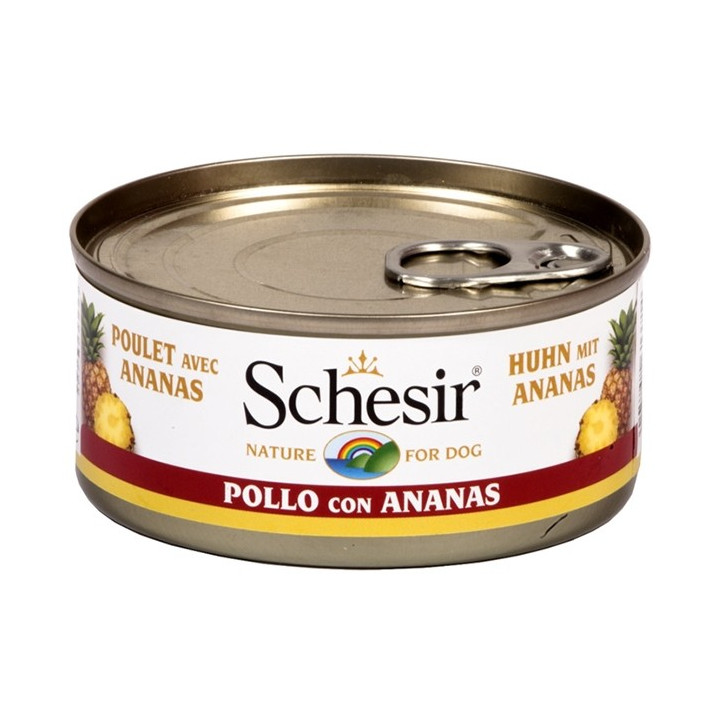Somministrare fino a 2 lattine al giorno, in associazione con alimenti umidi completi e/o croccantini Schesir.