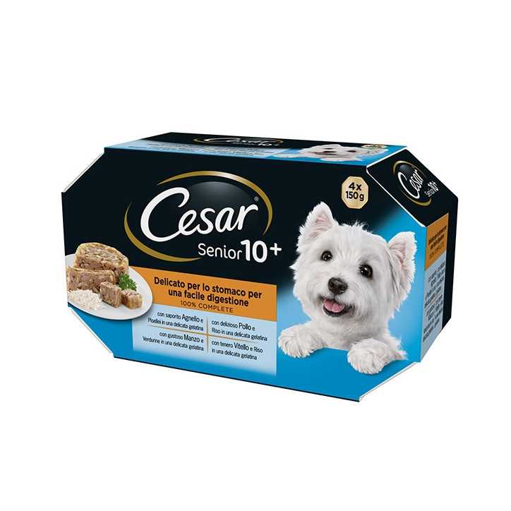 Contrassegno (+3 Euro)Gustoso alimento umido completo per cani maturi, selezionato in gelatina con tenero pollo e riso e con delizioso manzo e riso