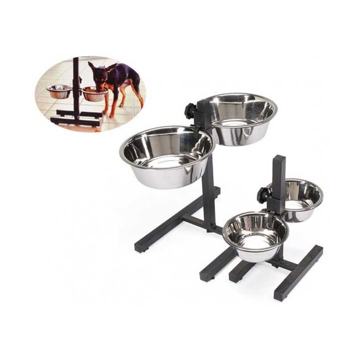 Il prodotto comprende 1 portaciotole + 2 ciotole in acciaio inox