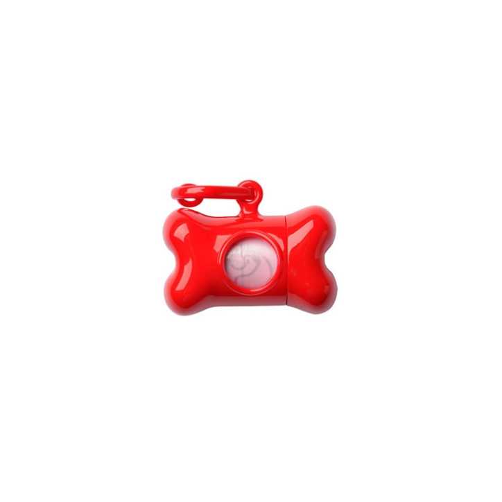 Dispenser sacchetti raccogli pupù con rotolo da 10 sacchetti biodegradabili.