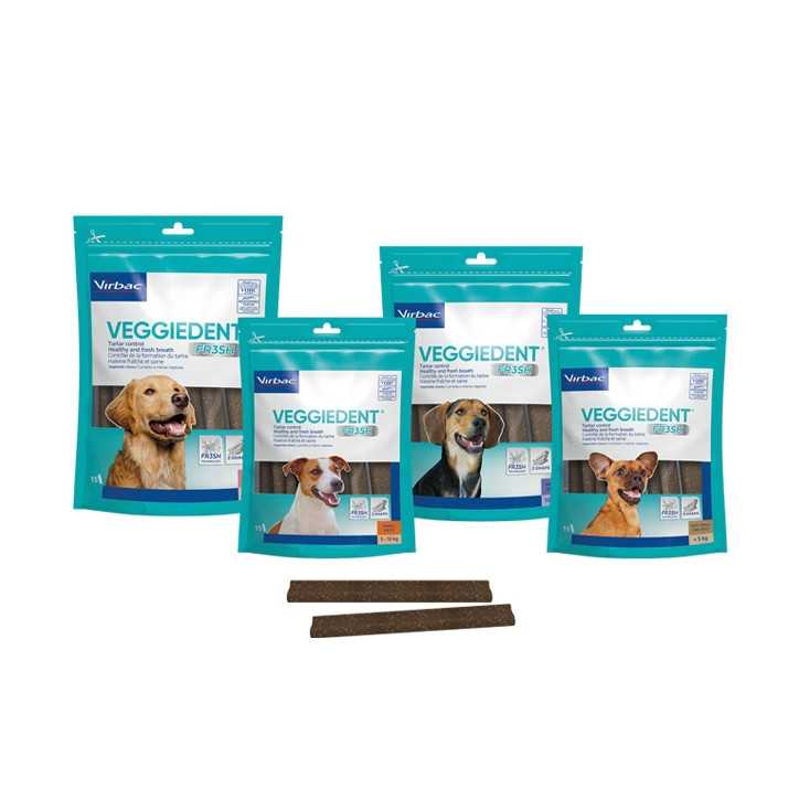Generalmente, VEGGIEDENT® FR3SH® può essere somministrato una volta al giorno. Parla sempre con il tuo Medico Veterinario prima di apportare modifiche alle cure dentali del tuo cane.