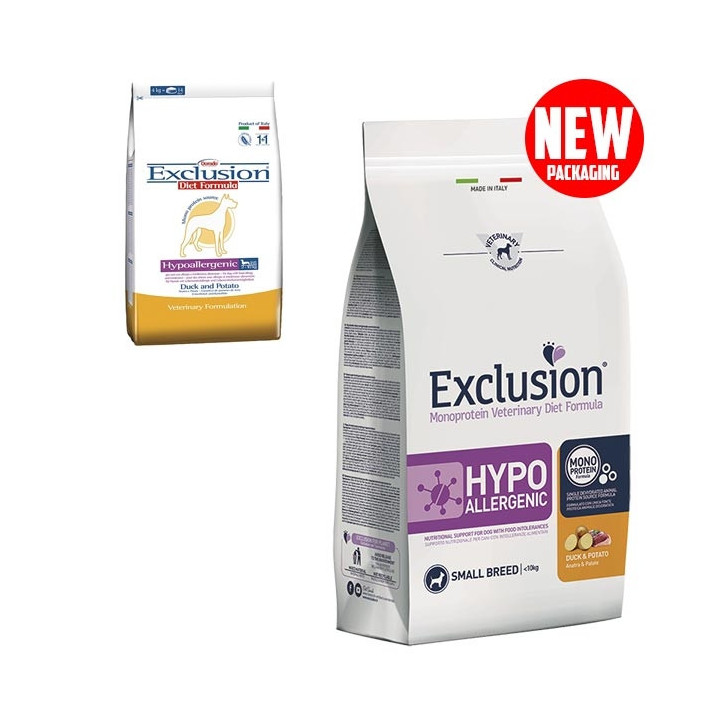 Duck and Potato (Anatra e Patate) è un alimento completo dietetico per cani adulti formulato per la riduzione di intolleranze a ingredienti e a sostanze nutritive