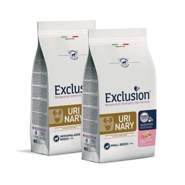 EXCLUSION Diet Urinary Adult Medium & Large Breed con Maiale, Sorgo e Riso 2 kg.