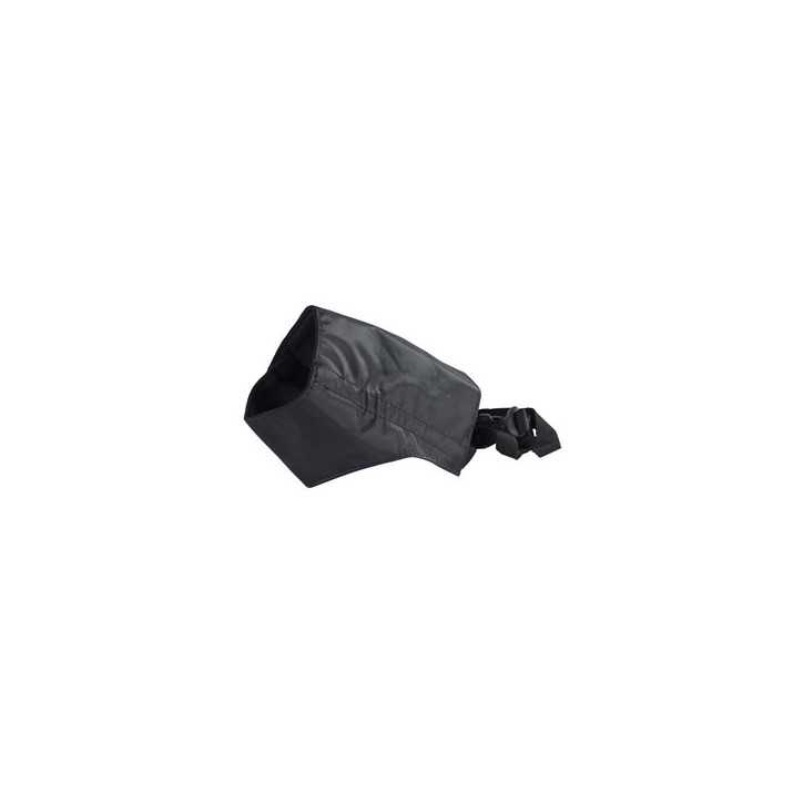 Museruola a fascia in nylon con attacco click-lock. Lavabile in lavatrice.