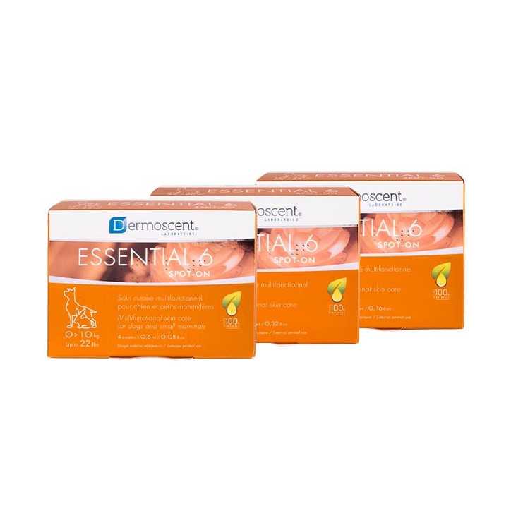Essential 6 spot-on è un prodotto dermo-cosmetico multifunzionale idoneo per tutti i tipi di cute e di pelo del cane e del gatto, anche per i più fragili e sensibili, grazie all’azione sinergica della miscela di ingredienti attivi, alla composizione ottimale in acidi grassi polinsaturi, e a un meccanismo di bio-diffusione attiva.