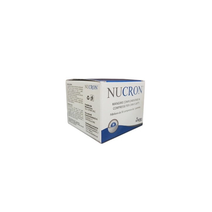 Contrassegno (+3 Euro)Nucron è un integratore per cani e gatti utile a regolare la flora intestinale. Ricco di fermenti lattici, agisce a livello intestinale risolvendo problemi legati a diarrea e dismicrobismo intestinale. Nei cuccioli e nei gattini è particolarmente indicato nella fase di svezzamento in quanto contribuisce alla formazione della flora microbica digestiva. Altamente appetivile è consigliata la somministrazione diretta o mescolata alla razione di cibo. Formato 30 compresse.