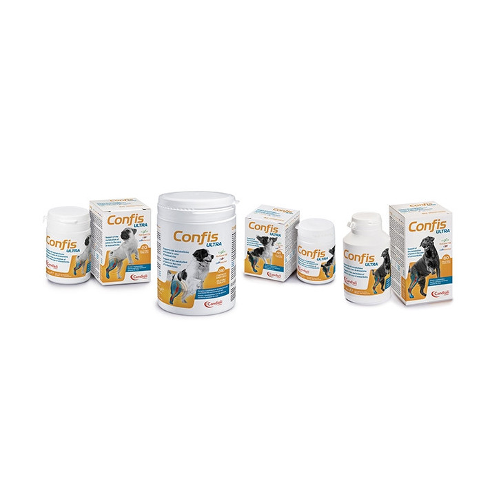 Confis Ultra è un mangime complementare dietetico per cani, formulato per il supporto del metabolismo articolare in caso di osteoartrite.