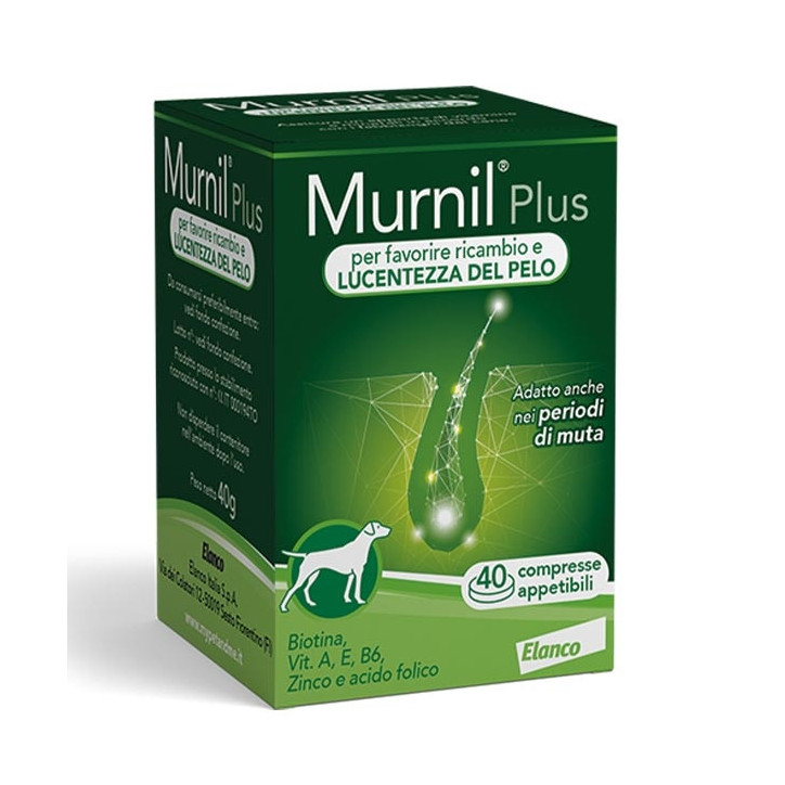 Contrassegno (+3 Euro)Murnil Plus è un mangime complementare per cani che favorisce il ricambio e la lucentezza del pelo.