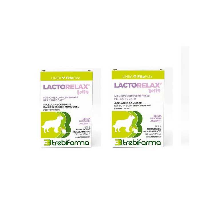 Contrassegno (+3 Euro)Mangime complementare per cani e gatti in gelatine gommose in comodo blister monodose con LACTORELAX - contiene triptofano ed estratti di Valeriana e Passiflora per favorire un fisiologico rilassamento in caso di animali agitati, ansiosi, irritabili ed iperattivi.